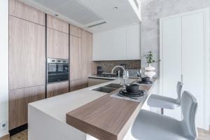 Accommodation includes one bedroom with air conditioning and one bed, accompanied by two bathrooms complete with a bathtub, shower, shampoo, hairdryer and private sauna facilities inside the unit. Guests will appreciate the fully equipped kitchen which features an oven, dishwasher, stovetop, refrigerator, microwave, toaster and coffee machine along with all necessary kitchenware.