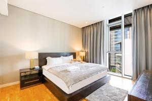 Apartmán High-End 1BR Bluewaters Luxury Near Ain Dubai se nachází v oblasti Bluewaters Island v Dubaji a nabízí prostorný byt s výhledem na zahradu a soukromým parkováním. Tento klimatizovaný apartmán má jednu ložnici a dvě koupelny, hosté mohou využívat venkovní bazén a fitness centrum.