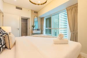 Das Apartment „High-Floor 2BR mit Pool und Stadtblick, nahe Straßenbahnstation und Dubai Marina Walk, Marina Heights, Dubai Marina“ von Deluxe Holiday Homes befindet sich im Stadtteil Dubai Marina in Dubai. Die geräumige Unterkunft bietet ein Zimmer mit zwei Schlafzimmern und drei Betten.