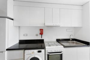The apartment comprises one bedroom with one bed, a fully equipped kitchenette for meal preparation, and one bathroom featuring an in-room hot tub. Additional room amenities include air conditioning, a washing machine and a baby cot or crib for families. Entertainment options include a flat-screen TV.