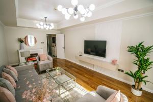 The apartment’s interior features one bedroom with two beds alongside a living room equipped with a sofa bed and television. Guests can prepare meals in the fully fitted kitchen which includes an oven, microwave, refrigerator, electric kettle, kitchenware as well as tea and coffee making facilities. Additional in-room amenities include air conditioning, bed linen, iron, washing machine and a baby cot or crib.