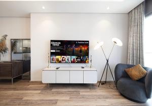 Każdy klimatyzowany apartament typu studio posiada prywatne wejście i przestronny układ z jednym salonem oraz maksymalnie trzema oddzielnymi sypialniami. Goście mają do dyspozycji w pełni wyposażone aneksy kuchenne ze sprzętem takimi jak płyty grzewcze, lodówki, zmywarki, mikrofalówki, piekarniki, naczynia kuchenne i stoły jadalne oraz zestawy do parzenia kawy i herbaty. Pokoje są dźwiękoszczelne dla komfortu gości i wyposażone w telewizory z płaskim ekranem obsługujące serwisy streamingowe oraz sejfy do bezpiecznego przechowywania wartościowych przedmiotów.