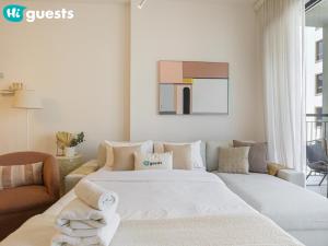 HiGuests - Soothing Seaside 2 BR Haven v La Mer nabízí klimatizované ubytování s bazénem a výhledem na moře v Dubaji. Tento prostorný apartmán má jeden pokoj, balkon s výhledem na moře a město a představuje klidné útočiště vzdálené 4,6 km od City Walk Mall.
