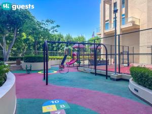 HiGuests - Luxe 2BR Overlooking Golf Course & Greenery to apartament z klimatyzacją i basenem z widokiem, położony w Dubaju. Apartament obejmuje dwa pokoje i oferuje widok na ogród. Znajduje się zaledwie 6 km od The Montgomery oraz 6,3 km od Mall of the Emirates.