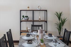 Apartament obejmuje dwie oddzielne sypialnie oraz trzy łazienki wyposażone w bezpłatne kosmetyki, prysznice, wannę lub prysznic, dodatkowe toalety, mydło do ciała, szampon i suszarki do włosów. W pełni wyposażony aneks kuchenny zawiera płytę grzewczą, piekarnik, mikrofalówkę, toster, lodówkę oraz zmywarkę, dostępne są również zestawy do parzenia herbaty i kawy oraz stół jadalny. W pokoju znajdują się pościel i ręczniki, żelazko, szafa/garderoba, pralka oraz rozkładana sofa z częścią wypoczynkową i telewizorem z płaskim ekranem.