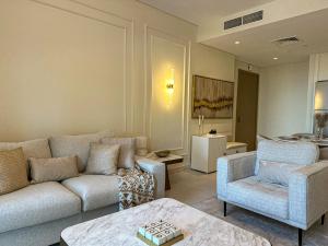 Apartmán HiGuests - Luxury Living With Huge Terrace in Creek Harbour se nachází 13 km od Dubai Fountain a Dubai Mall v Dubaji. Nabízí fitness centrum, bezplatné Wi-Fi a prostorný pokoj s klimatizací. K dispozici je balkon s venkovním nábytkem a bezplatné soukromé parkování.