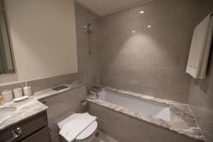 This spacious apartment comprises one bedroom with air conditioning and a bed, as well as two bathrooms equipped with bathtubs, complimentary toiletries including shampoo, conditioner, body soap, and hairdryer. Guests benefit from ironing facilities featuring an iron and ironing board along with towels and bed linen for added comfort.