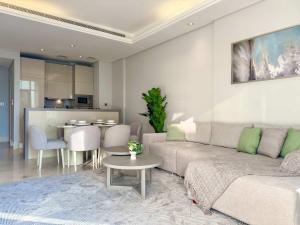 Apartament Homey Upgraded 1BDR Th8 z dostępem do plaży, położony nad brzegiem morza w Dubaju, oferuje odkryty basen oraz parking na miejscu. To jednopokojowe mieszkanie zapewnia widok na morze i bezpośredni dostęp do plaży oraz bezpłatne WiFi na terenie całego obiektu.