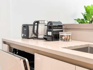 Przestronne wnętrza obejmują jedną sypialnię oraz salon z dwoma łóżkami, a także dwie łazienki wyposażone w wannę z hydromasażem i prywatną saunę. Goście mogą korzystać z klimatyzacji, telewizora, pralki, deski do prasowania i żelazka, ręczników i pościeli oraz szafy. W pełni wyposażony aneks kuchenny zawiera płytę grzejną, piekarnik, mikrofalówkę, zmywarkę, lodówkę, czajnik elektryczny oraz zestaw do przygotowywania kawy i herbaty wraz ze sprzętem kuchennym.