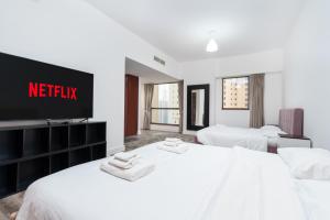 Este amplio apartamento en la playa, situado en el distrito Jumeirah Beach Residence de Dubái, cuenta con una piscina privada y se encuentra a solo 1,5 km de Marina Beach. Dispone de una habitación con cuatro camas, vistas impresionantes y un balcón para disfrutar del entorno.