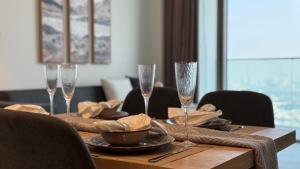 Apartmán Iconic Burj Khalifa & Fountain view - 2BR - Signature Grande Residences se nachází v Dubaji a nabízí soukromý bazén a bezplatné Wi-Fi. Tento prostor zahrnuje jeden pokoj a hosté mají k dispozici bezplatné soukromé parkování. Apartmán je vzdálen pouhých 1,8 km od Dubai Fountain a 2,6 km od ikonické Burj Khalify s úchvatným výhledem na bazén a panorama města.