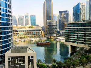 JBR Retreat: Stylish Views to klimatyczne, klimatyzowane mieszkanie z prywatnym basenem, usytuowane w Dubaju, zaledwie 300 metrów od The Walk at JBR i tuż przy plaży Marina Beach oddalonej o 600 metrów. Ten apartament typu studio nad samym brzegiem morza oferuje jedno pomieszczenie oraz dostęp do balkonu, a także bezpłatny prywatny parking i darmowe WiFi.