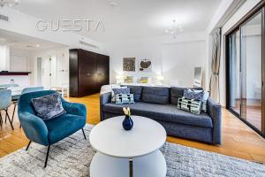 L’appartement dispose d’une chambre avec deux lits et d’une salle de bains dotée d’une baignoire, d’une douche, d’un sèche-cheveux ainsi que des articles de toilette gratuits comprenant shampooing et savon corporel. Le coin cuisine comprend un four, une plaque de cuisson, un réfrigérateur, un lave-vaisselle, un micro-ondes, un grille-pain et une machine à café avec les équipements nécessaires pour préparer thé et café. Parmi les autres équipements figurent un lave-linge, un étendoir à linge, du matériel pour repasser (fer et planche), un espace salon avec canapé-lit, un coffre-fort, une armoire ainsi que des prises près du lit , le linge de lit et les serviettes sont fournis.