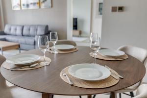 Для приготовления пищи имеется полностью оборудованная кухня: посудомоечная машина, микроволновая печь, холодильник, электрический чайник, обеденный стол, мини-кухня для чая и кофе плюс полный набор кухонной утвари. Дополнительно предоставлены утюг, шкаф для одежды и стиральная машина, также имеются необходимые туалетные принадлежности — мыло для тела, шампунь и фен.