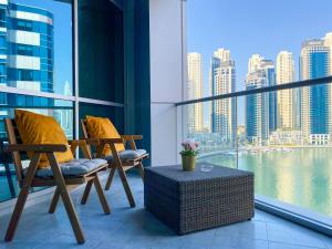 Located in Dubai Marina, La Buena Vida Holiday Homes - Exquisite Spacious Luxe 1BR Apt is a spacious apartment featuring a full marina view and an equipped kitchen. This one-room property includes three beds and offers mountain views from its balcony. It lies just 1 km from Marina Beach and is close to The Walk at JBR.