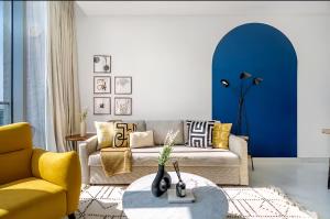 Апартаменты Lagoon Luxe - стильное проживание в районе District One MBR DXB с кондиционером и собственным бассейном расположены в Дубае, всего в 8,2 км от Фонтана Дубая и в 9,3 км от Бурдж-Халифа. Этот апартамент на берегу моря предлагает бесплатную частную парковку, бесплатный Wi-Fi и включает одну просторную комнату с видом с балкона и террасы.