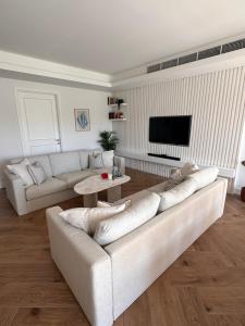 Hosté mohou využít služby prádelny i venkovní prostory - celoroční bazén obklopený zahradním prostředím a sluneční terasy zařízené venkovním nábytkem jak na patiu tak na balkoně. Soukromé parkování je k dispozici přímo na místě. Pro zábavu slouží televizory s plochou obrazovkou se satelitními kanály i streamovací služby dostupné po celé vile.