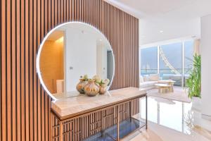 Apartament Lavish & Equipped z 2 sypialniami, położony przy oceanie z widokiem na morze i miasto oraz na Ain Dubai w Dubaju, oferuje patio, całoroczny basen na świeżym powietrzu, zaplecze spa oraz pakiety wellness. Ta nadmorska nieruchomość obejmuje jedną przestronną kawalerkę z trzema łóżkami i zapewnia bezpłatny prywatny parking oraz bezpłatne WiFi na terenie całego obiektu.