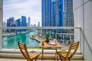 Die großzügige 2-Zimmer-Wohnung mit bezauberndem Blick auf die Marina in Dubai verfügt über einen Pool mit Aussicht und liegt nur 800 Meter vom The Walk at JBR sowie 1,5 km vom Marina Beach entfernt. Die Unterkunft umfasst ein Zimmer und bietet Stadt- sowie Seeblick von Balkon und Terrasse.