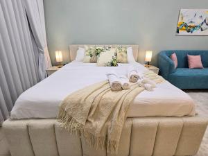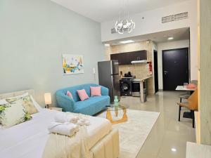 Situato a Dubai, Leisure Retreat - Studio in Dubai Marina - 5 Mins to JBR Beach & The Walk - Close to Metro offre una piscina sul tetto e un'area spiaggia privata. Questa casa vacanze dispone di una camera con vista sulla città, connessione WiFi gratuita e parcheggio privato gratuito per gli ospiti che arrivano in auto.