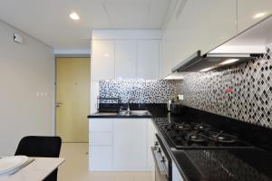 Внутри апартаментов имеется одна спальня с одной кроватью, полностью оборудованная кухня с духовкой, плитой, холодильником, микроволновой печью, тостером, электрическим чайником и кухонной утварью, а также обеденный стол. В ванной комнате предусмотрены бесплатные туалетные принадлежности — мыло для тела и шампунь — а также тапочки, кондиционер для волос и фен. Дополнительные удобства включают кондиционер воздуха, утюг с гладильной доской, полотенца и постельное белье, стиральную машину, зону отдыха с диваном, шкаф для одежды.