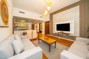 Die geräumige 3-Zimmer-Wohnung mit jeweils eigenem Bad und Balkon in Dubai, 12 km vom The Montgomery entfernt, bietet einen Dachpool, einen Innenpool sowie Aufzugszugang. Die klimatisierte Wohnung verfügt über drei Schlafzimmer und vier Badezimmer sowie Stadtblick vom Balkon und der Terrasse.