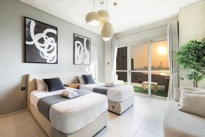 Apartament Lovely Dubai Eye & Sea View z prywatnym basenem, położony 3 minuty od plaży, znajduje się w Dubaju, zaledwie 1,3 km od The Walk at JBR i 2,4 km od Marina Beach. Ta przestronna nieruchomość obejmuje dwa pokoje i oferuje bezpłatne WiFi oraz prywatny parking na miejscu. Z balkonu roztacza się widok na okolicę.
