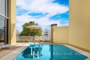 LUX - The Ocean Pearl Villa ofrece alojamiento con aire acondicionado, piscina privada y vistas al lago, ubicada en Dubái a solo 2,1 km de la playa Frond E. Esta villa frente al mar cuenta con patio, balcón, WiFi gratis y aparcamiento privado gratuito. La villa dispone de una estancia principal y sorprendentemente cuatro dormitorios y cuatro baños con vistas al mar.
