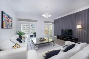 Luxusní apartmán 2BR v Al Khushkar Shoreline - Palm Jumeirah se nachází pouhých 1,2 km od pláže Palm West Beach v Dubaji. Tento prostorný byt nabízí klimatizaci a bezplatné WiFi. K dispozici je jeden pokoj s výhledem na zahradu z balkonu a bezplatné soukromé parkování.