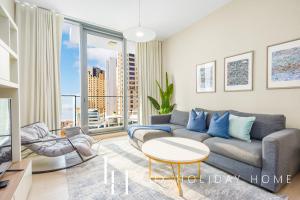 Die LUX LIV Contemporary Marina View Suite 2 in Dubai befindet sich nur 600 Meter vom Marina Beach entfernt und bietet ein modernes Apartment mit Blick auf den See und die Stadt. Die Unterkunft mit einem Zimmer verfügt über einen Balkon, kostenfreie Privatparkplätze sowie kostenloses WLAN.