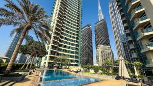 Apartmán Luxe 2 ložnice s výhledem na Burj a PS5 od Vista Stays Dubai Downtown se nachází v centru Dubaje a nabízí střešní bazén s výhledem na město. Tento prostorný apartmán zahrnuje jednu jednotku se dvěma ložnicemi a třemi koupelnami.