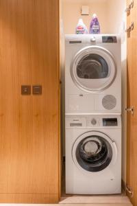 El apartamento incluye tres baños, cocina americana totalmente equipada, aire acondicionado en todas las estancias y sala de estar. Los huéspedes disponen además de lavadora, caja fuerte, televisor pantalla plana, calefacción, cuna para bebés y zonas comunes con salón/TV compartidos.
