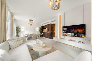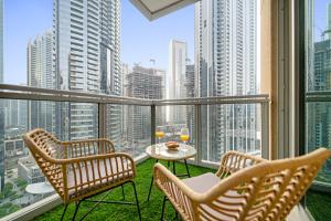 Luksusowy, 2-pokojowy apartament z widokiem na Burj Khalifa znajduje się rzut kamieniem od Burj Khalifa i Fontanny Dubaju. Obiekt w Dubaju oferuje bezpłatne WiFi, klimatyzację oraz udogodnienia domowe, takie jak piekarnik i ekspres do kawy. Apartament składa się z jednego pokoju i zapewnia zachwycający widok na miasto z balkonu.