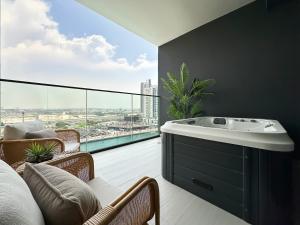 Luxe Living v srdci Dubaje s vířivkou nabízí soukromý bazén a bezplatné Wi-Fi. Apartmán se nachází 2 km od Dubai Fountain a 3,7 km od Dubai Mall. Má jeden pokoj s výhledem, bezplatné soukromé parkování a výtah.