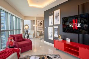El apartamento de 2 dormitorios de lujo en Paramount Towers con vistas al Burj Khalifa, un hotel de 3 estrellas, cuenta con spa y centro de bienestar y está ubicado en Dubái, a solo 3,2 km de The Dubai Fountain. Este espacioso apartamento ofrece impresionantes vistas a la ciudad desde su balcón.
