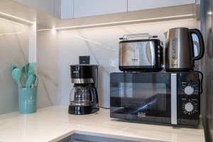 Apartmán zahrnuje jednu ložnici s jednou postelí, dvě koupelny vybavené bidetem a vanou nebo sprchovým koutem, stejně jako obývací pokoj zařízený pohovkou a televizí s plochou obrazovkou. Plně vybavená kuchyň má troubu, varnou desku, mikrovlnnou troubu, lednici, toustovač, rychlovarnou konvici i jídelní stůl pro stolování uvnitř spolu se zařízeními na přípravu čaje a kávy. Další vybavení v apartmánu zahrnuje ručníky, povlečení na postelích, žehličku, šatní skříň i pračku.
