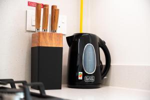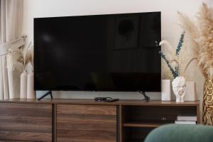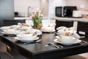 Das klimatisierte Apartment verfügt über zwei Badezimmer mit Badewannen und Duschen. Zur Ausstattung gehören Bettwäsche, Handtücher, Hausschuhe sowie allergikerfreundliche Kopfkissen ohne Federn. Kostenfreie Pflegeprodukte wie Shampoo und Conditioner sowie Haartrockner sind jeweils vorhanden. Das Wohnzimmer bietet einen Flachbildfernseher mit Satellitenkanälen sowie einen Sitzbereich mit Schlafsofa auf Parkettboden.