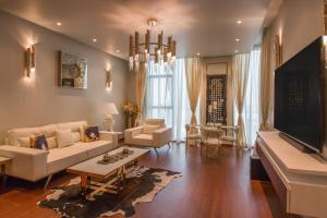 Situato a Dubai, il lussuoso appartamento con 2 camere da letto completamente ristrutturato e dotato di strutture di alto livello offre ampi spazi, una piscina all'aperto e parcheggio privato in loco. Questa sistemazione climatizzata comprende due camere da letto separate e dispone di comfort esclusivi per un soggiorno piacevole.