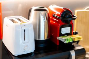 Apartament klimatyzowany wyposażony jest w dwa podwójne łóżka oraz telewizor z płaskim ekranem i część jadalnianą. Goście mogą przygotować posiłki w w pełni wyposażonym aneksie kuchennym zawierającym piekarnik, mikrofalówkę, lodówkę, ekspres do kawy oraz zestaw do parzenia herbaty i kawy. Do dyspozycji jest również suszarka do ubrań. Dodatkowe udogodnienia to sprzęt do prasowania wraz z deską do prasowania, ogrzewanie, wykładzina dywanowa oraz garderoba.
