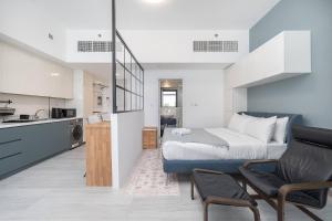 Cet appartement spacieux comprend une chambre, un salon et une salle de bain équipée d’une douche à l’italienne et d’une baignoire. Les hôtes disposent d’un coin cuisine équipé avec four, plaque de cuisson, lave-vaisselle, micro-ondes, réfrigérateur, grille-pain, bouilloire électrique ainsi que tout le nécessaire pour cuisiner. La climatisation complète les équipements qui incluent aussi des facilités de repassage (fer et planche), chauffage, machine à laver, espace salon, bureau de travail et armoire.