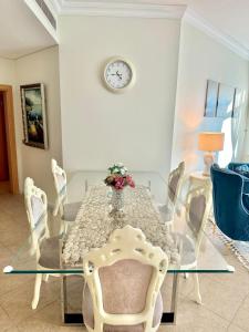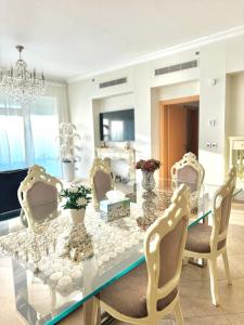 Luxusní 5hvězdičkové apartmány Luxury - Beachfront - Spacious Shoreline se nacházejí v Dubaji a nabízejí soukromý bazén s výhledem na moře. Tento přímořský apartmán zahrnuje jeden prostorný byt se třemi ložnicemi a čtyřmi koupelnami, balkonem a výhledem do zahrady. Hosté mají k dispozici bezplatné Wi-Fi připojení i soukromé parkování.