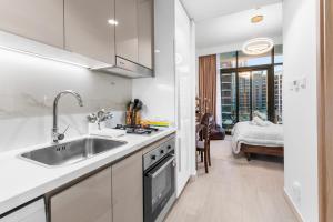 Chaque appartement dispose d’un lit et d’un balcon donnant sur la ville. Les clients bénéficient d’un coin cuisine entièrement équipé avec réfrigérateur, micro-ondes, grille-pain et bouilloire électrique. Parmi les équipements supplémentaires : climatisation, chauffage, machine à laver avec étendoir et sèche-linge ainsi qu’un fer et une armoire. La salle de bains comprend une douche ainsi que des articles de toilette offerts tels que shampooing et savon corporel.