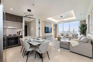 Este lujoso apartamento frente al mar en Dubái cuenta con piscina privada y acceso directo a la playa, ofreciendo un amplio refugio con vistas al lago y al mar. El alojamiento dispone de una habitación, aparcamiento privado gratuito y conexión WiFi sin coste adicional. Se encuentra a solo 4,2 km de The Walk en JBR y a 6 km de The Montgomery.