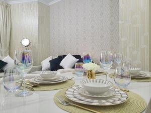 Zakwaterowanie obejmuje jedną sypialnię uzupełnioną w pełni wyposażonym aneksem kuchennym oraz łazienkę wyposażoną w mydło do ciała, szampon, suszarkę do włosów oraz wannę z hydromasażem dla dodatkowego relaksu. Apartament dysponuje także pościelą, ręcznikami, biurkiem do pracy, żelazkiem, możliwością dostawienia łóżeczka dziecięcego oraz pralką.