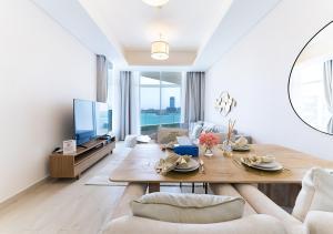 Die luxuriöse 1-Zimmer-Wohnung in Azizi Mina liegt nur 400 Meter vom Anantara Beach entfernt direkt am Strand in Dubai und bietet einen privaten Strandbereich sowie Meerblick. Die geräumige Unterkunft verfügt über ein Zimmer mit zwei Badezimmern und ist vollständig klimatisiert.