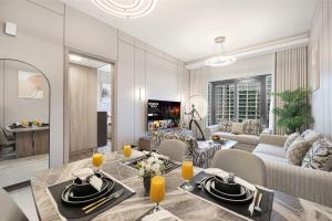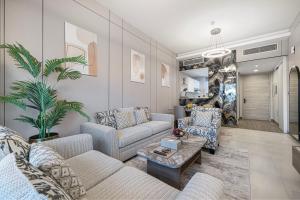 Luksusowy apartament 1-pokojowy z widokiem na Burj Khalifa i kanał, wyposażony w klimatyzację oraz prywatny basen, znajduje się w Dubaju, zaledwie 4,2 km od fontanny Dubai Fountain i 4,9 km od Burj Khalifa. Przestronne mieszkanie oferuje jeden pokój z dwoma łóżkami oraz balkon i bezpłatne WiFi.
