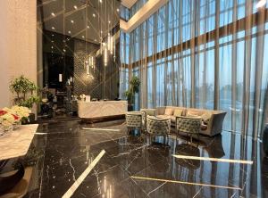 Apartmán Luxury 2BR above the clouds on38 v Dubaji se nachází 4,5 km od Burj Khalifa a nabízí úchvatný výhled na bazén a jezero, bezplatné soukromé parkování a WiFi zdarma. Tento klimatizovaný jednopokojový apartmán poskytuje jedinečný pobyt s přístupem na balkon s výhledem na klidnou vodní plochu.
