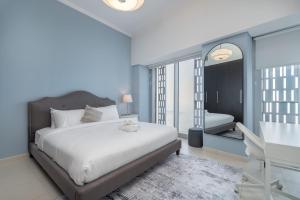 Luxusní čtyřpokojový apartmán v Marina s úchvatným výhledem na palmy se nachází v Dubai Marina, Dubaj. Tento luxusní byt nabízí jeden pokoj a bezplatné Wi-Fi po celém objektu i fitness centrum.