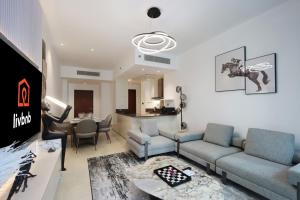 Die luxuriöse 2-Zimmer-Wasserfront-Oase in MarinaGate - Livbnb befindet sich in Dubai, nur 800 Meter vom Barasti Beach entfernt, und bietet einen Balkon mit Stadtblick. Diese geräumige Unterkunft umfasst zwei Schlafzimmer und drei Badezimmer mit Badewannen sowie kostenfreien Pflegeprodukten.