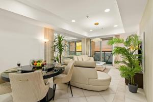 Die geräumige Wohnung umfasst zwei Schlafzimmer und zwei Badezimmer, die jeweils mit Dusche, Bidet, Hausschuhen, Haartrocknern sowie kostenlosen Pflegeprodukten wie Shampoo, Conditioner und Duschgel ausgestattet sind. Die voll ausgestattete Küche eignet sich ideal zur Zubereitung von Mahlzeiten. Weitere Ausstattungsmerkmale sind Heizung, Klimaanlage, Bügeleisen, Safe und Waschmaschine. Ein Flachbildfernseher sorgt für Unterhaltung. Vom Balkon aus genießen Sie angenehme Ausblicke auf die Stadt-Skyline.